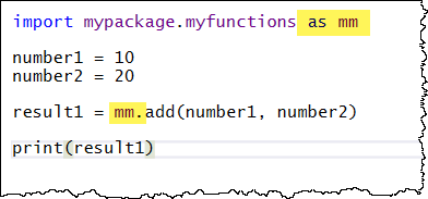 Do you think the prefix “mypackage.myfunctions” will be too long in all your subsequent code? Then you can use an alias, like this;